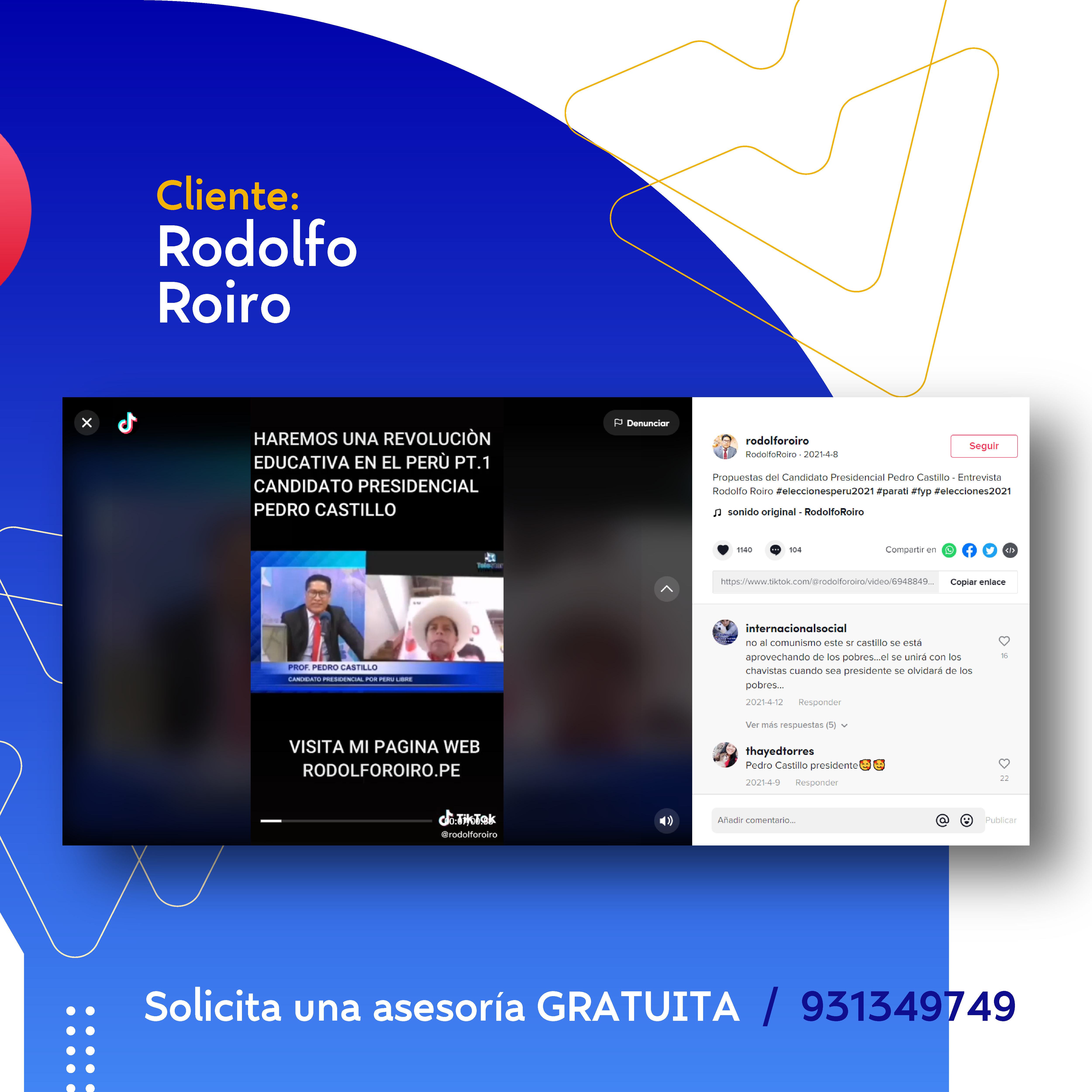 Pero nuestro trabajo no se detuvo ahí. Como parte de nuestra dedicación para llevar al cliente hacia el éxito, decidimos explorar nuevas oportunidades en las redes sociales. Así, surgió la idea de TikTok, una plataforma emergente con gran potencial. Brindamos al cliente asesoramiento en contenido viral y utilizamos sus grabaciones y entrevistas en radio y televisión para producir contenido creativo en TikTok.