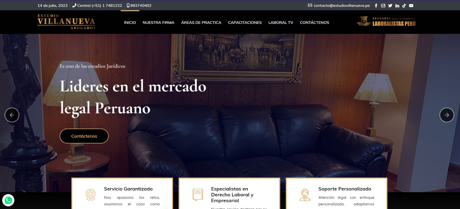 La transformación digital de Estudio Villanueva Abogados fue un éxito. Su nueva página web refleja su experiencia y conocimientos en derecho laboral, atrayendo a más clientes potenciales. La estructura mejorada y el diseño elegante facilitan la navegación y la búsqueda de información, generando una mayor interacción y confianza en los servicios legales que ofrecen.