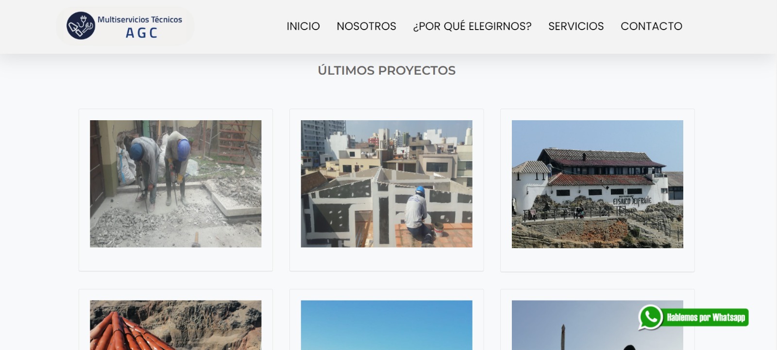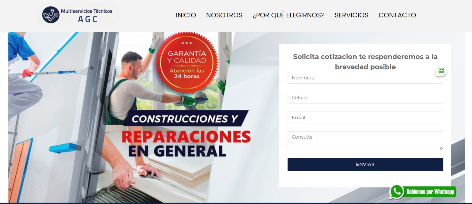 Para complementar esta estrategia, creamos una landing page atractiva y funcional para AGC. Diseñamos un menú de inicio intuitivo, que permitía a los visitantes navegar fácilmente por las diferentes áreas de interés, como una descripción detallada de la empresa, sus servicios, fotografías de trabajos realizados y opciones de contacto.